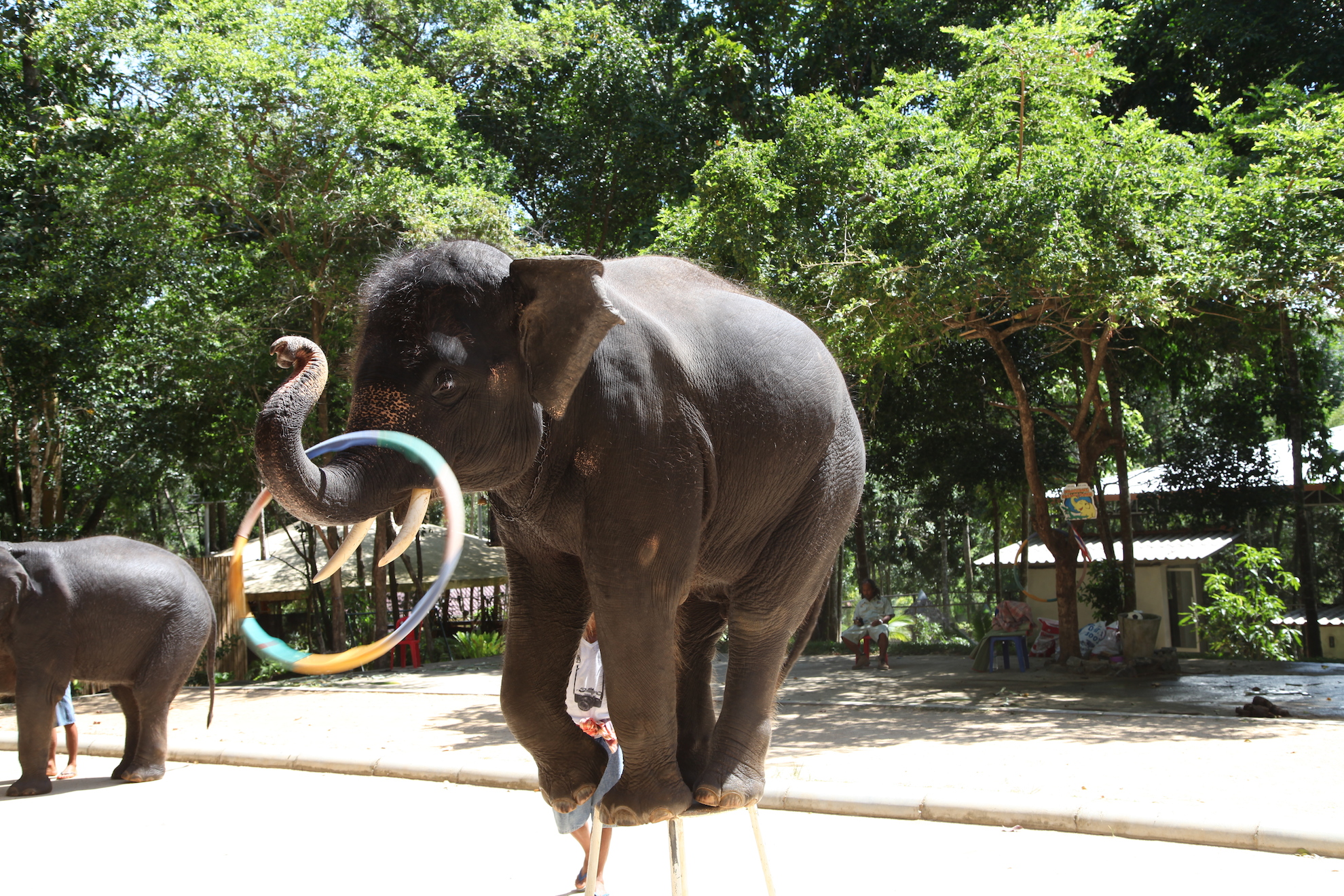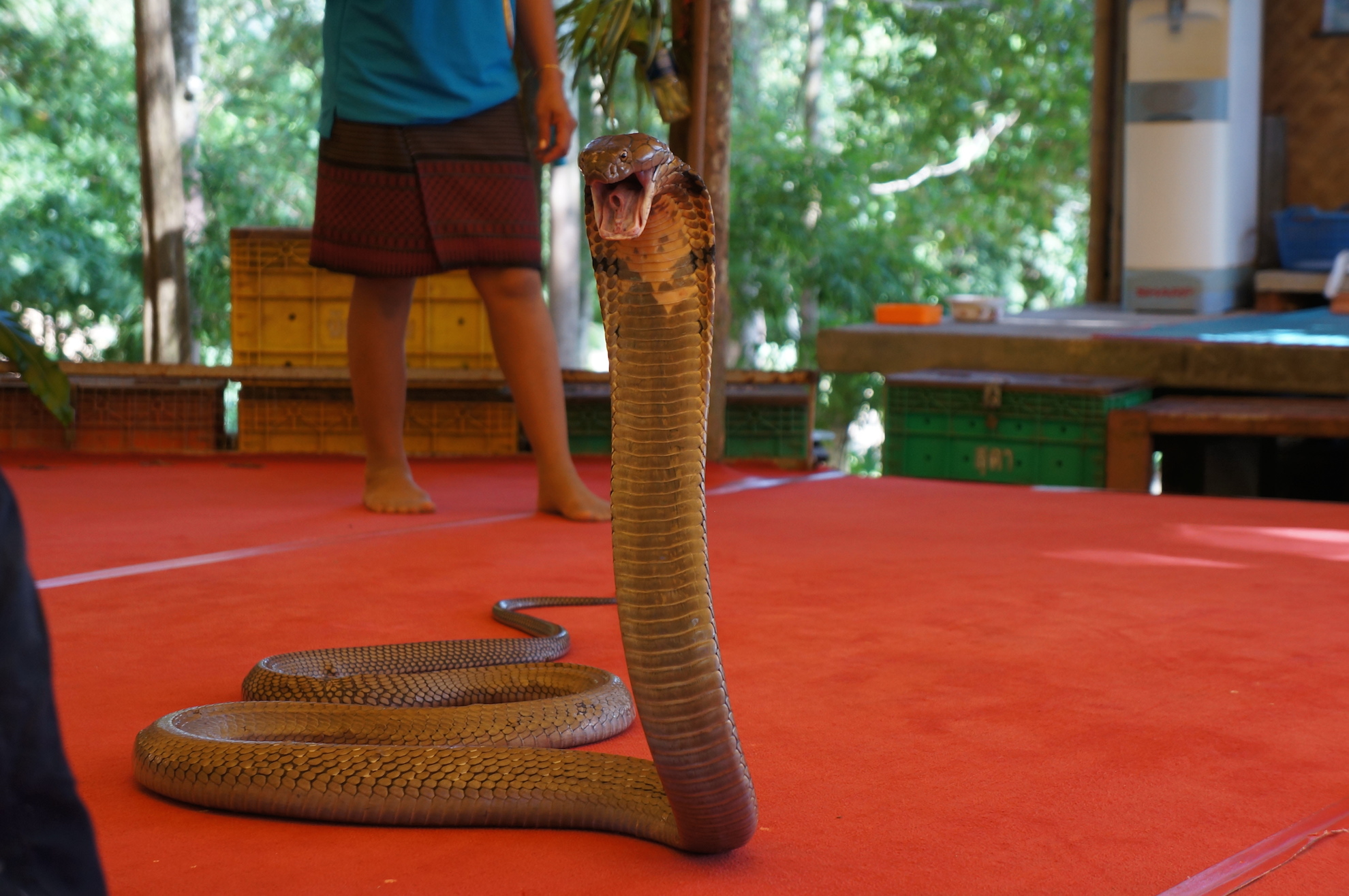 Em seguida, fomos assistir a um espetáculo com papagaios, macacos, crocodilos, elefantes e cobras. Mais uma vez, percebi que os animais em questão não recebem o tratamento adequado e são vistos apenas como um meio de ganhar dinheiro.