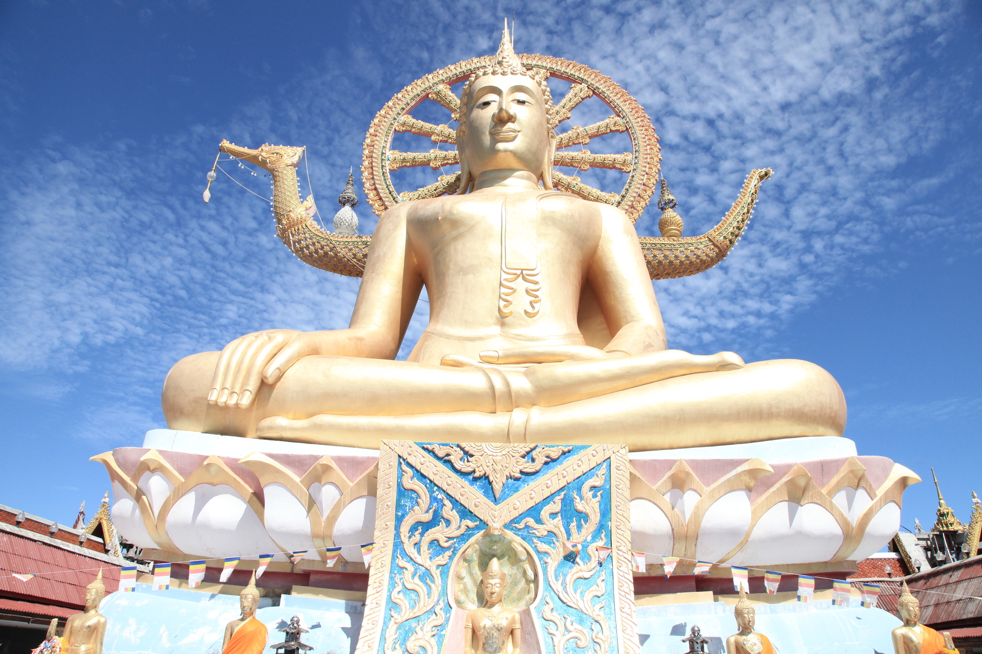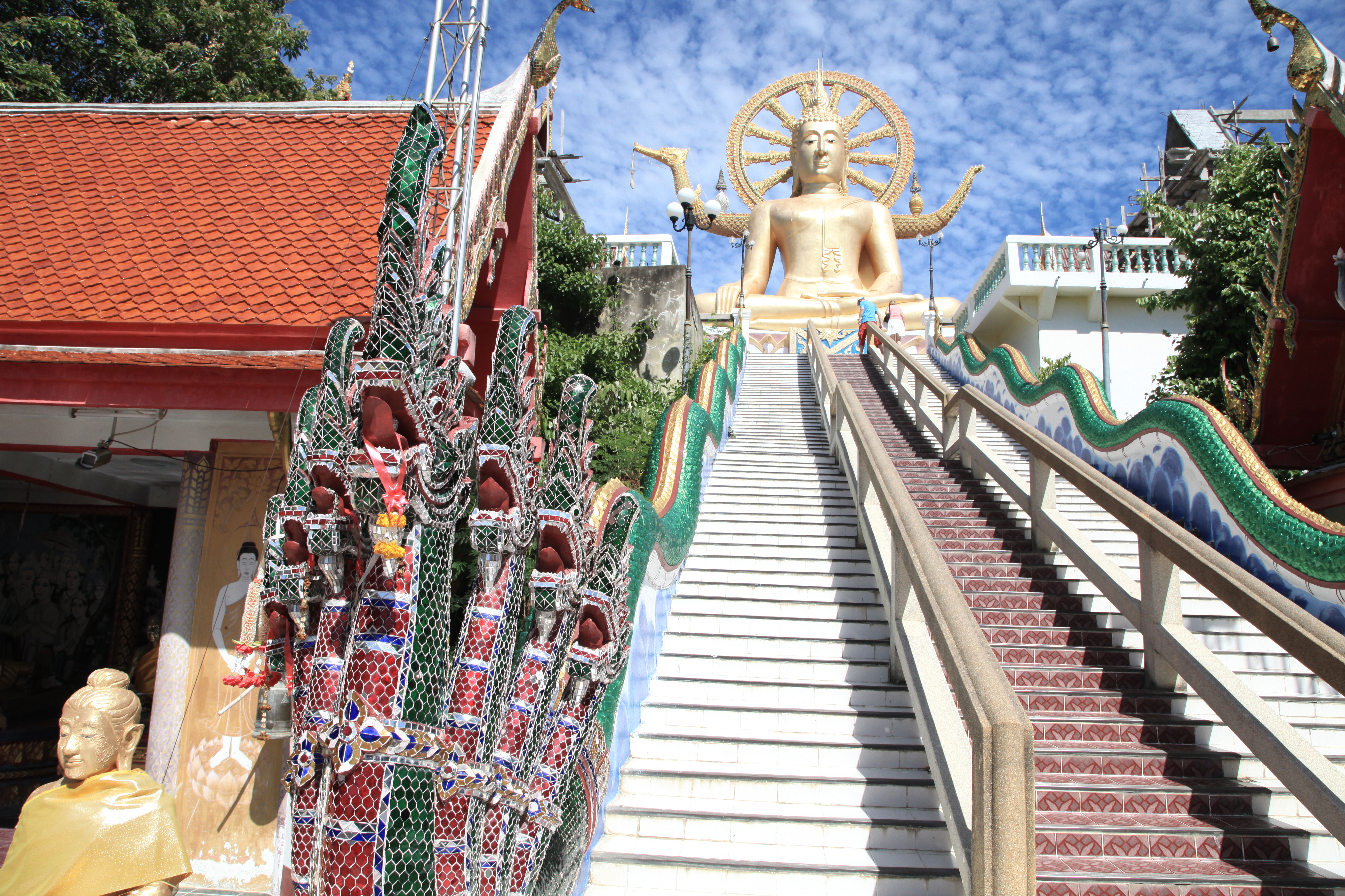 Big Buddha (Wat Phra Yai): Vale a pena conhecer, pois diz muito sobre a cultura tailandesa. O templo do Big Buddha é considerado símbolo da cidade e uma das atrações mais populares da ilha.  A estátua do Buddha foi construída em 1972, feita de ouro e possui 12 metros de altura, podendo ser vista a quilômetros de distância. Para subir a escadaria que leva ao Grande Buddha, é preciso tirar os sapatos. Como o lugar é considerado sagrado, é aconselhável vestir-se de forma modesta, cobrindo boa parte do corpo.